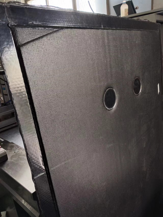 設(shè)備用于長度為1800mm,寬度為1400mm,厚度10mm的玻纖護(hù)板的四周熱壓成型。人工上料,人工下料,加熱,成型過程自動化進(jìn)行,更加快捷高效,節(jié)省成本。